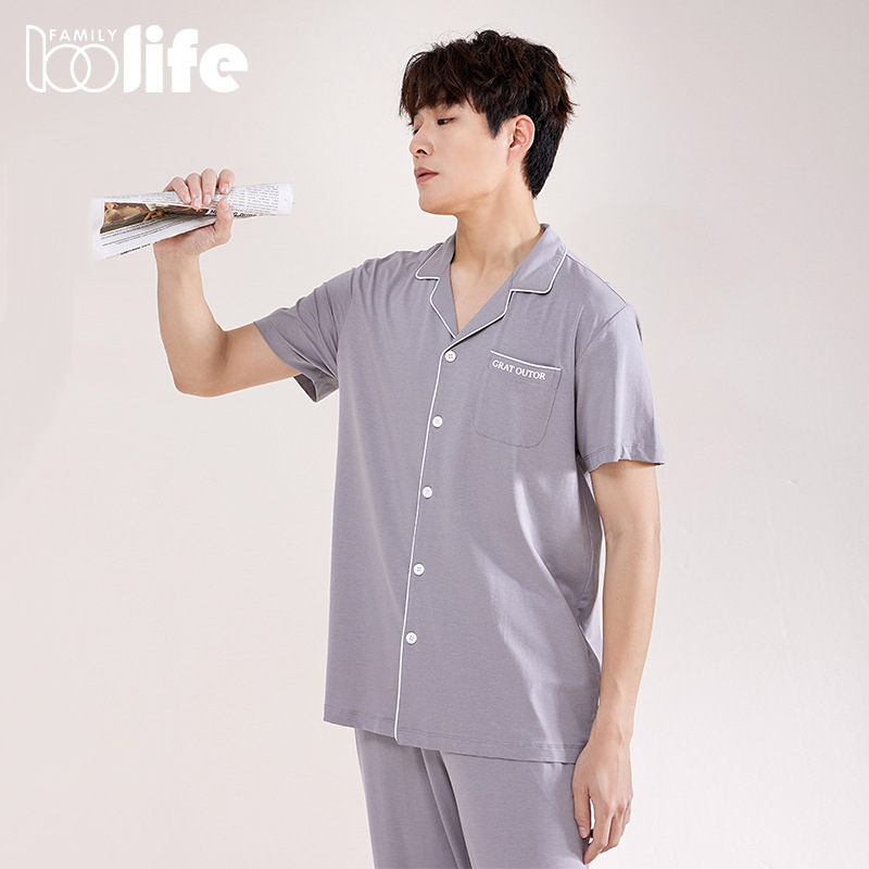 2025m Lan 新しいテンセル綿メンズホームウェア薄手肌に優しいメンズパジャマ夏セットホームパジャマ