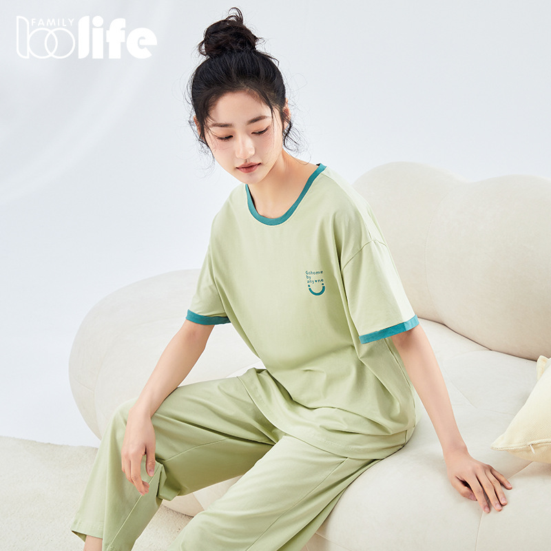2025m Lan 新しい夏クール半袖パンツパジャマ女性用テンセル綿薄手エアコン付きルームホームウェアセット