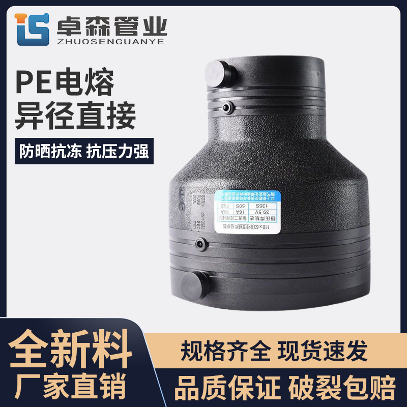 PE水道管部品の電気溶接接続の変径の大きさは直接規格がそろっています。