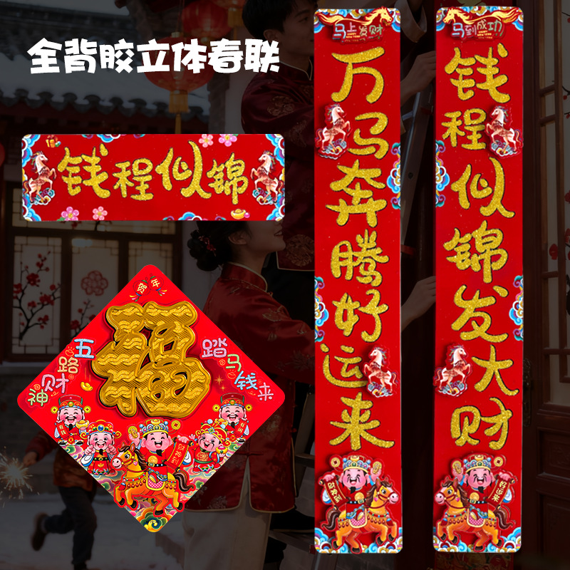 2026年新作 馬年 フェルト立体ドアステッカー 漫画風 春節 新年飾り 干支ペアステッカー 祝福文字ステッカー 卸売