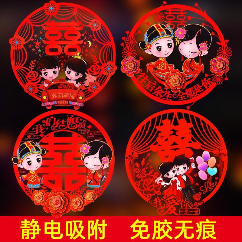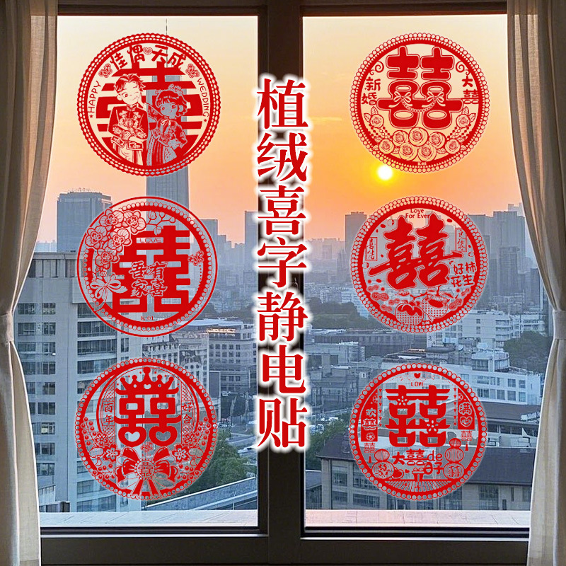 結婚の喜字静電ステッカー、ダブルハピネスステッカー、結婚式、新婚祝い用品、ガラス窓飾り、百年の幸せを願う