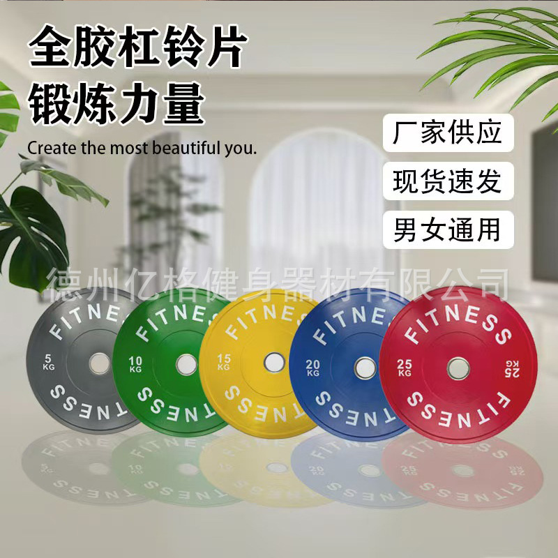 業務用男女フィットネス器材カラー全ゴム大孔競技重量挙げバーベル片ジム訓練用バーベル片