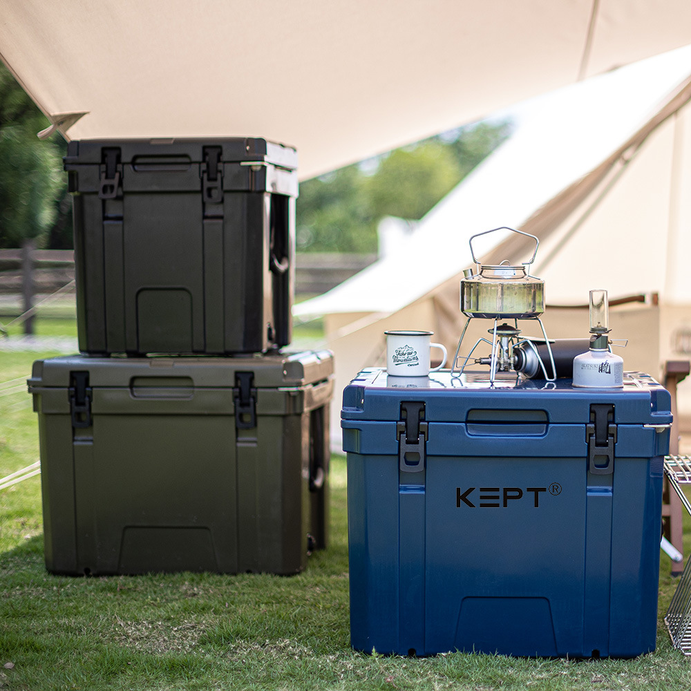 メーカー卸売り大サイズ40リットル角型ロール成形技術冷却箱魚鮮度保持箱キャンプ専用貯蔵箱