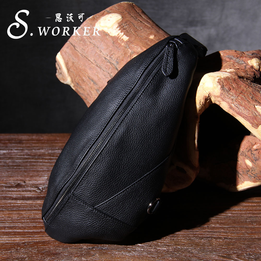 思沃可本革男性胸包頭層牛革欧米復古手作りリュックサックアマゾン対外貿易