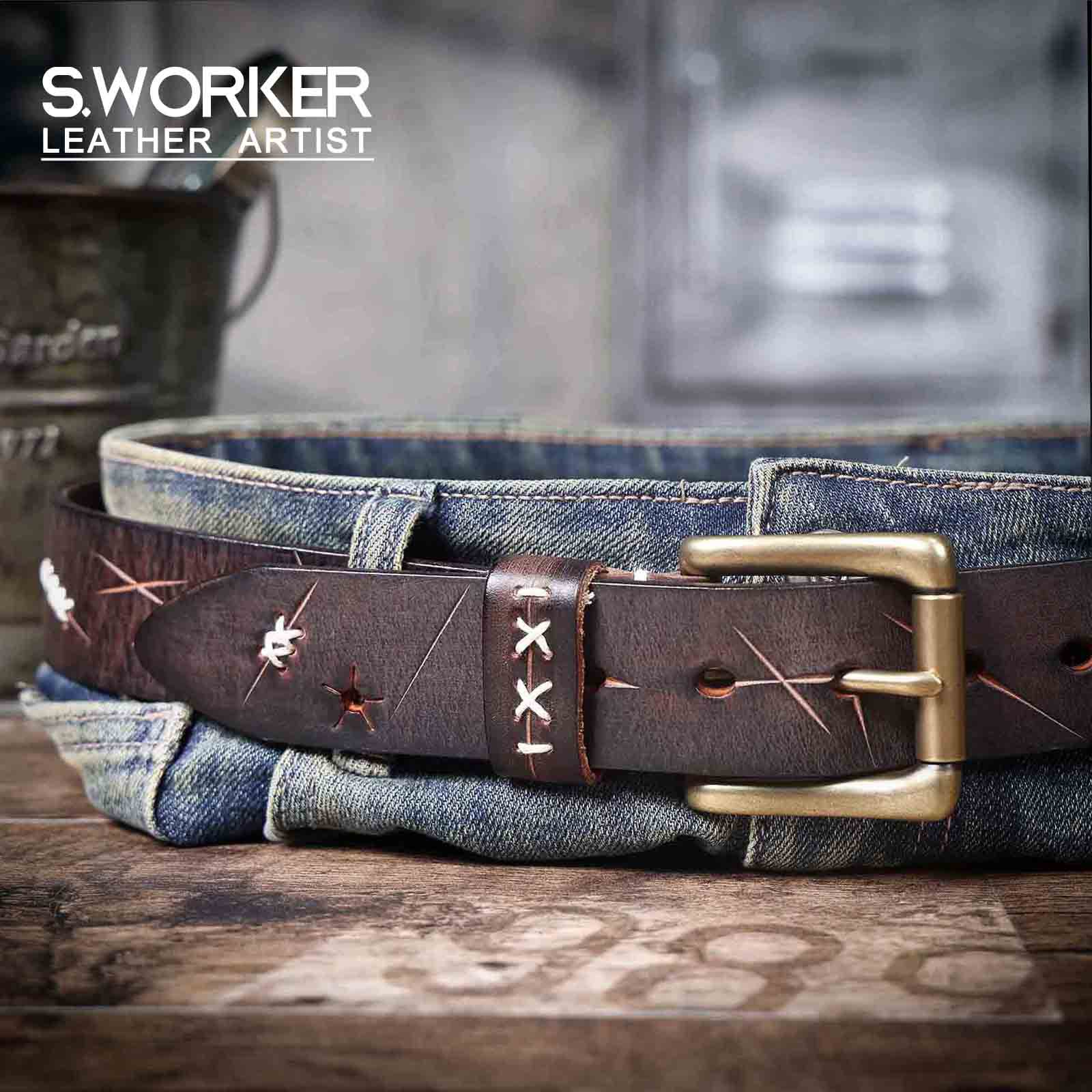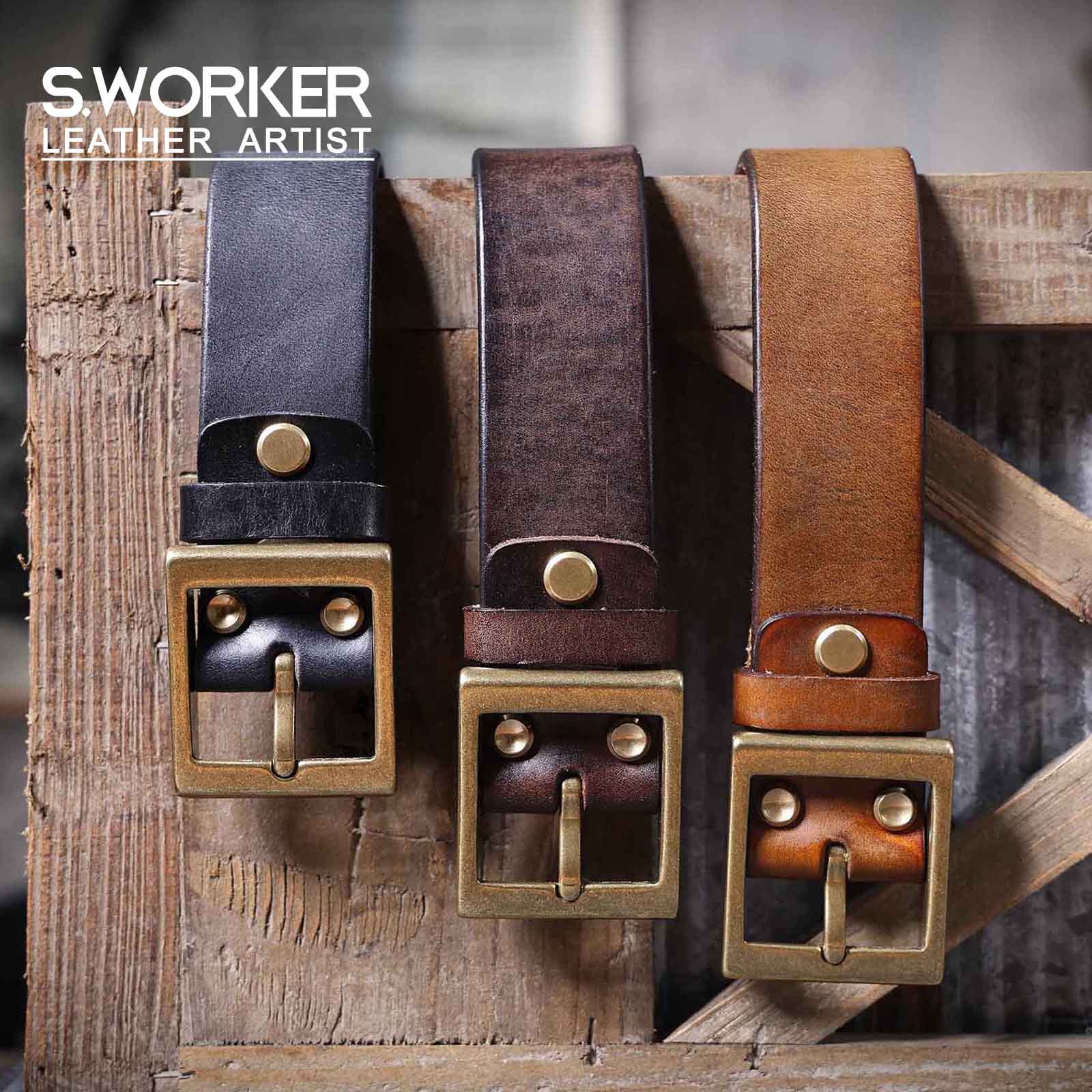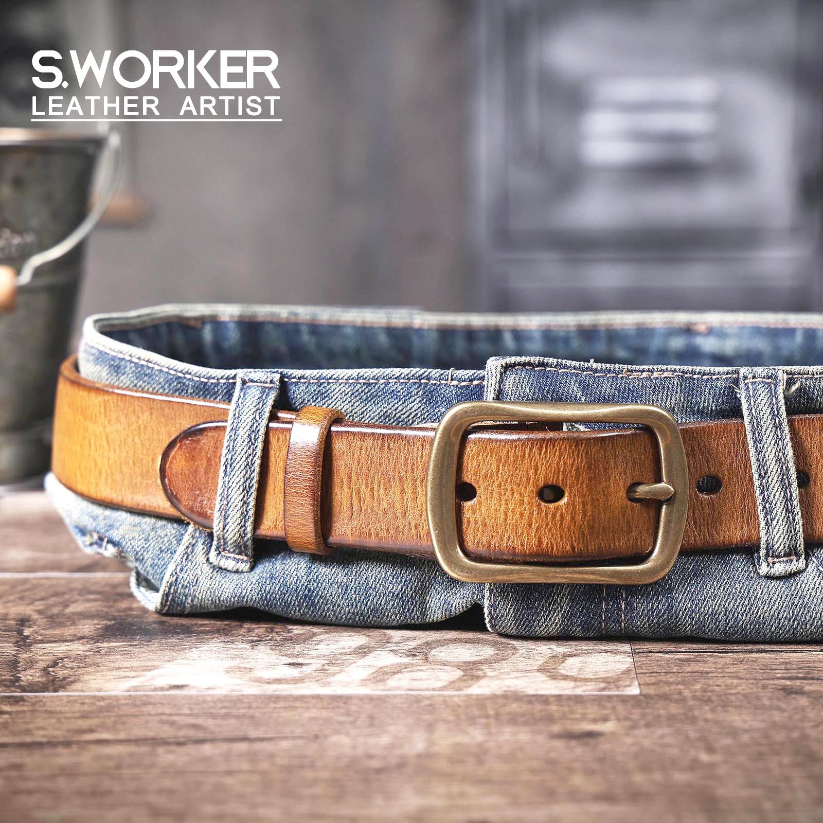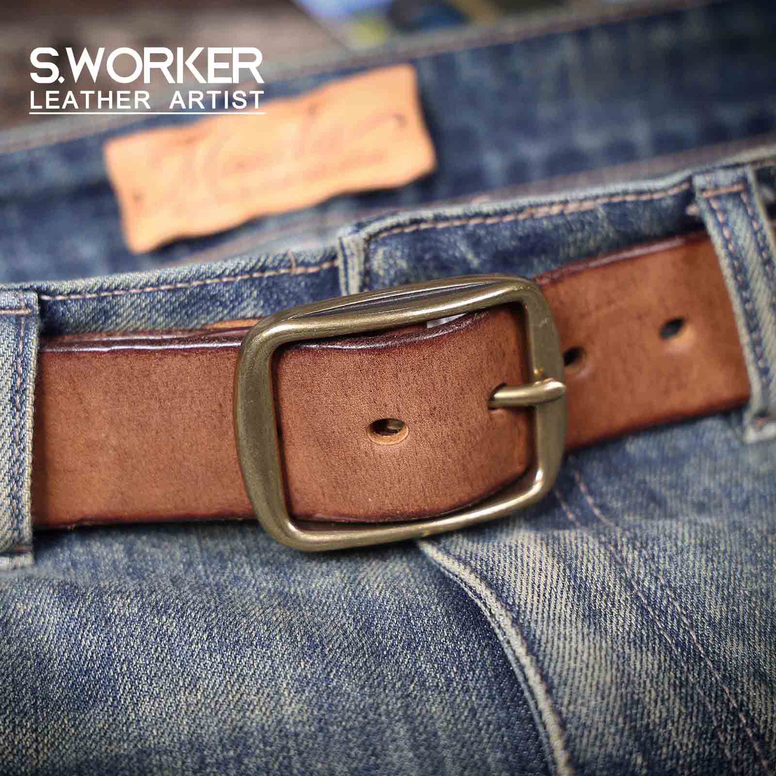 アメリカのレトロなトップ層牛革男性ベルト純銅ベルト針バックル手作りイタリア真皮厚手ベルト