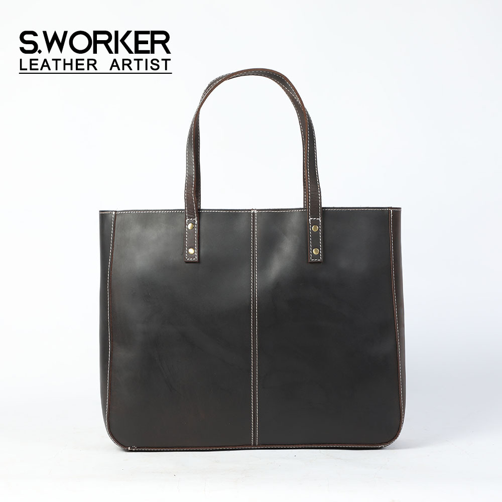 シンプルなレトロなトップ層牛革大容量ハンドバッグ男性本革トートバッグシングルショルダーバッグ女性アマゾン対外貿易