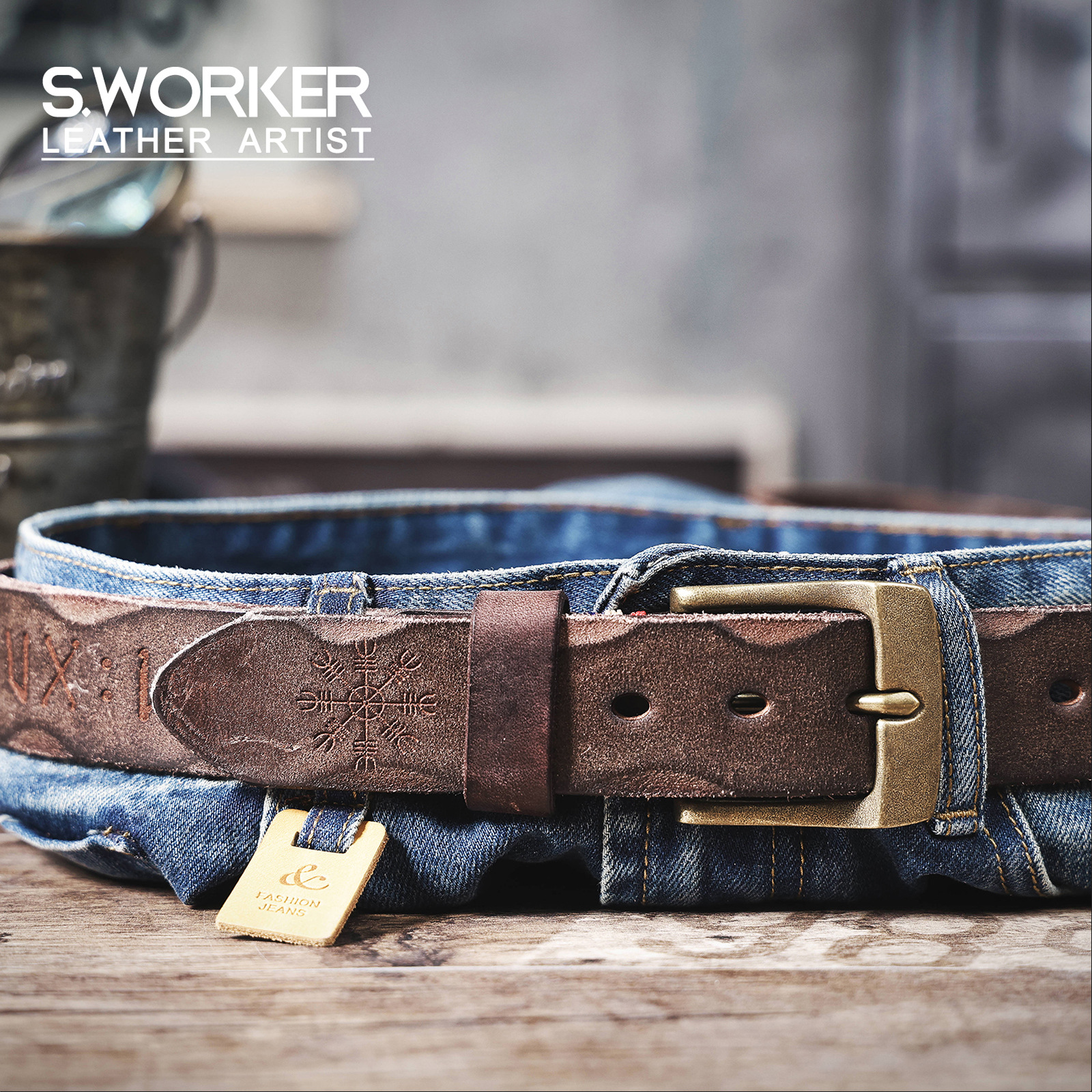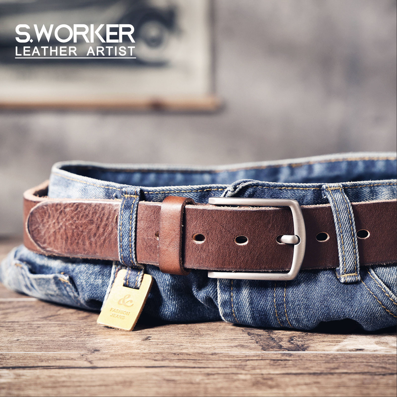 レトロカジュアルトップ牛革男性ベルト純銅ベルト針バックル手作り本革ベルトシンプル