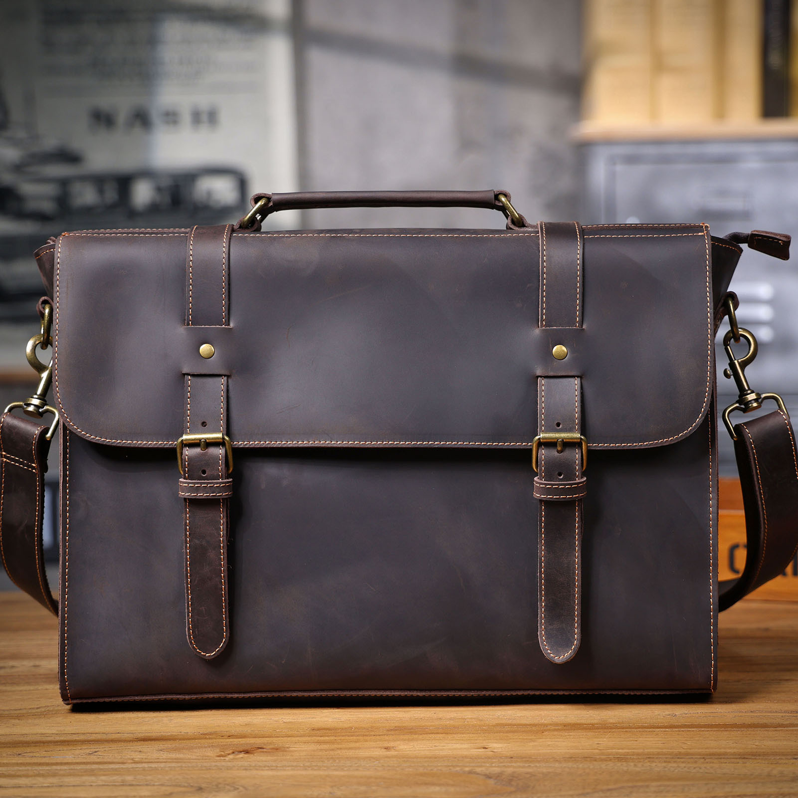 狂馬皮男包手提げブリーフケースビジネスシングル肩斜め掛けレトロ本革パソコンカバン男性頭層牛革