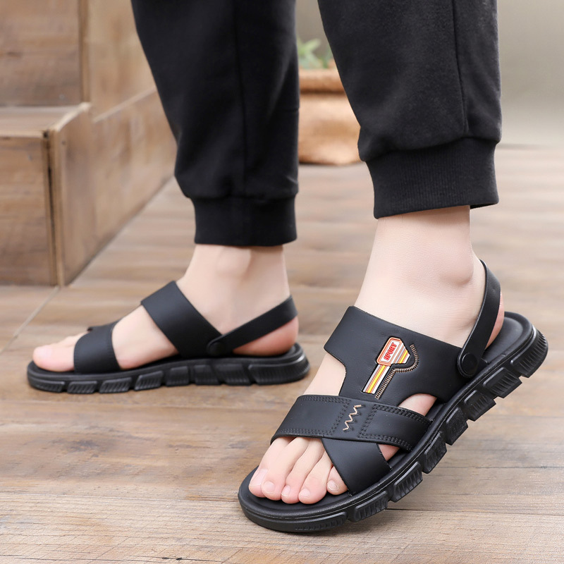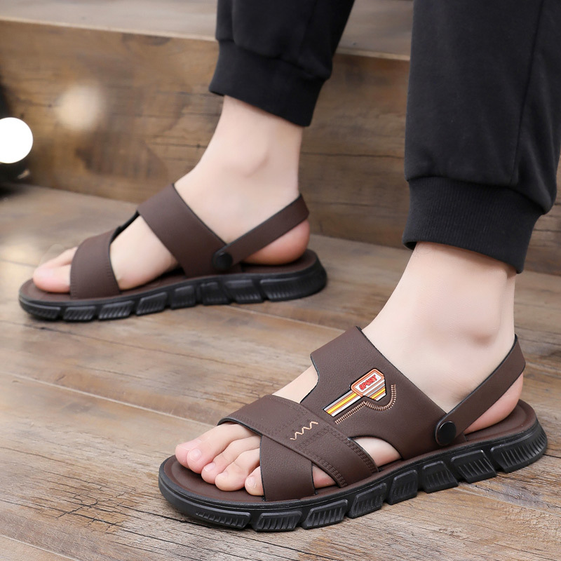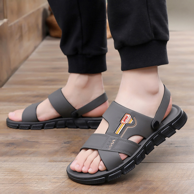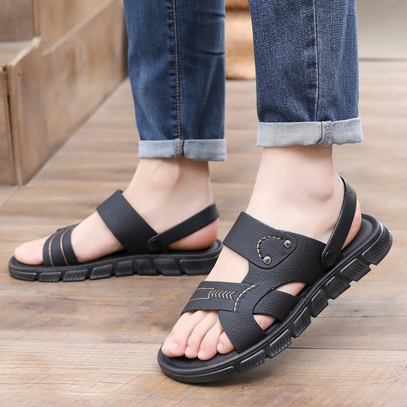 男性サンダルの新型夏防臭ビーチシューズのお父さんはサンダルを履いています。