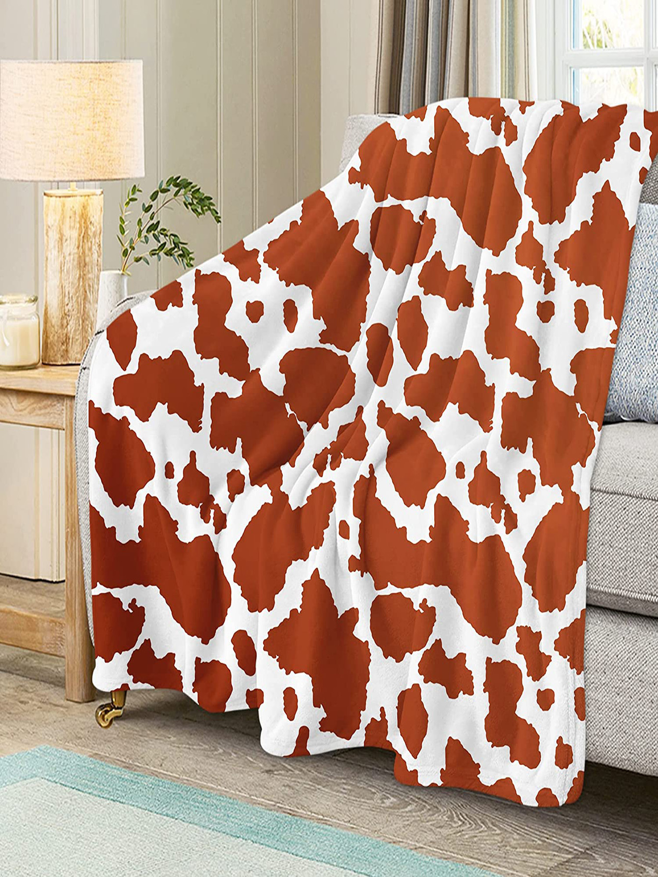 人気茶色乳牛hdプリント超柔らかいフランネル毛布、エアコン毛布、昼休み毛布、プレゼント毛布