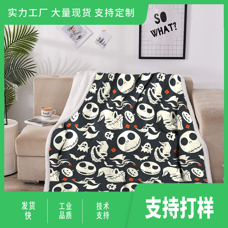 国境を越えたアマゾンクリスマスハロウィーン頭蓋ジャックフランネル毛布デジタルプリント卸売りメーカー直供