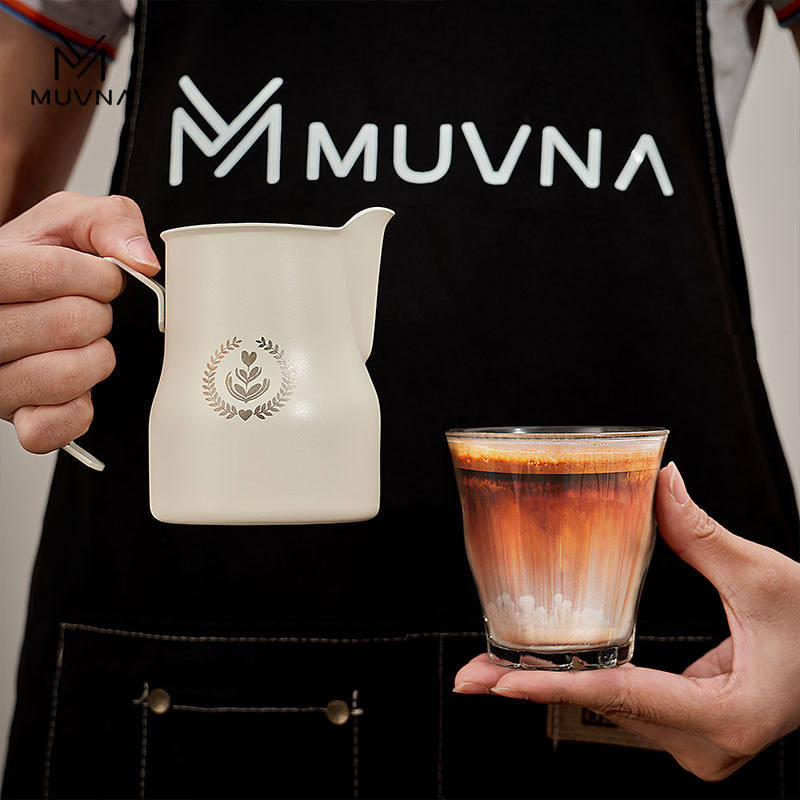 Muvnaエスプレッソミルクカップ304ステンレス大腹ミルクタンク350/450mlプルカップミルクカップ