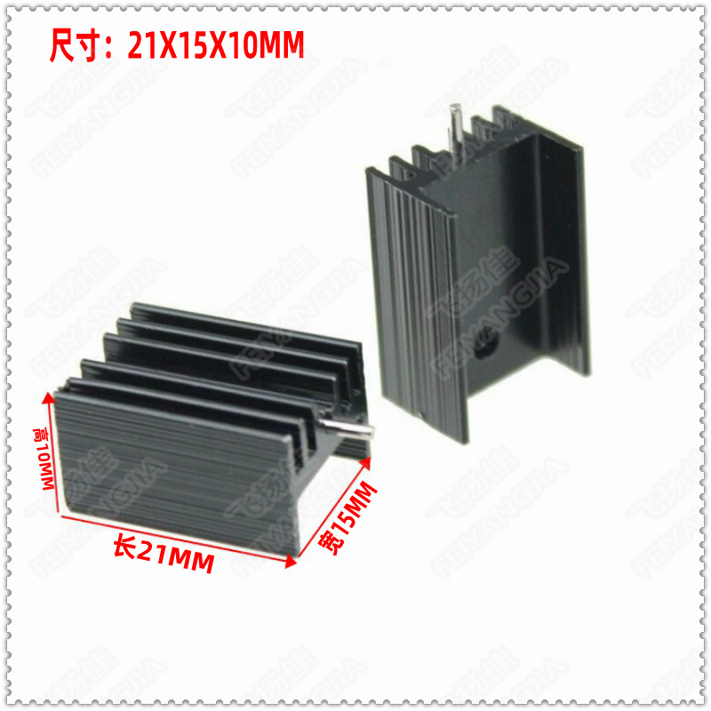 純アルミ放熱シート21*15*10mm黒色針付き良質放熱器to-220トランジスタなど専用
