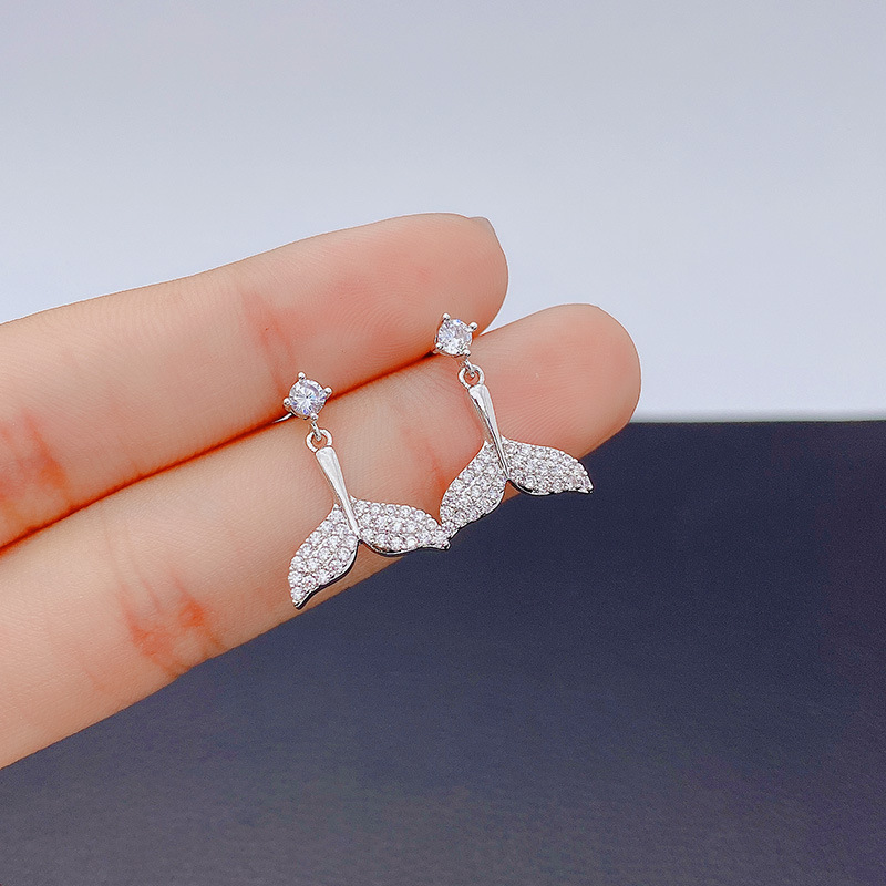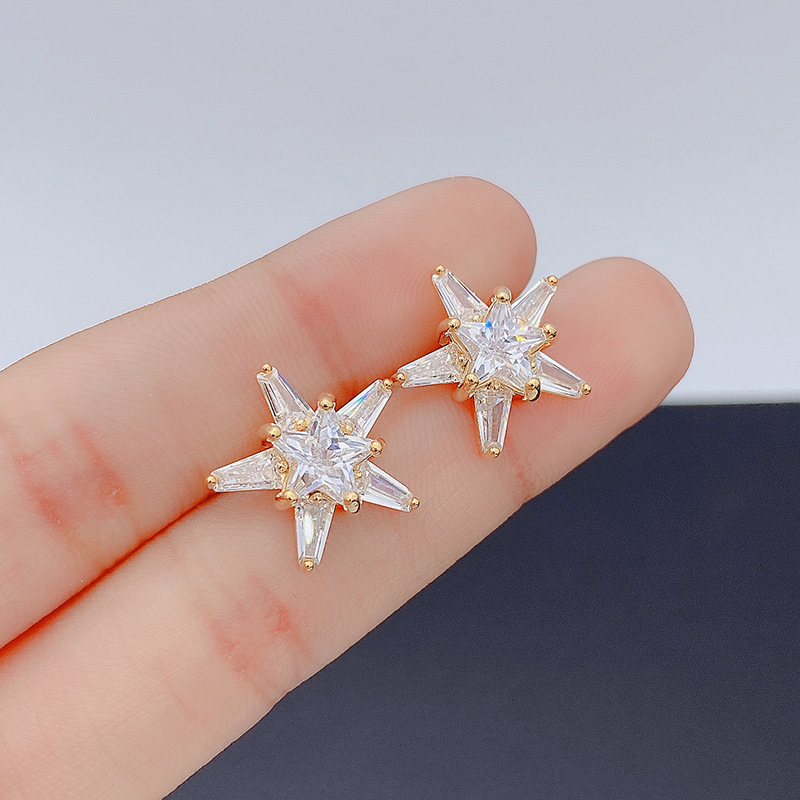 ジルコニウム五角星ピアス女性S925純銀針イヤリング潮個性ファッション気質