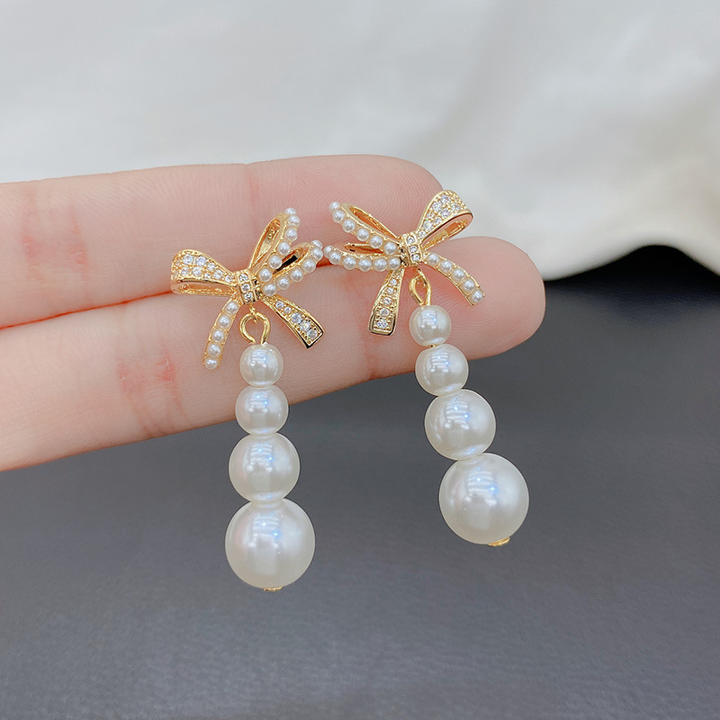 軽くて豪華で精巧な蝶結びの真珠の長いイヤリングの女性の個性の気質のイヤリングのファッションの誇張の高級感の耳飾り