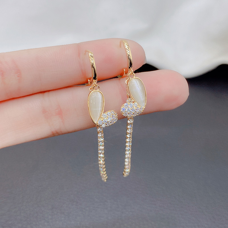 猫の目の石の愛の長いタイプのフリンジの耳のボタンの女性はやせている顔の小さい大衆のデザイン感が見えます。