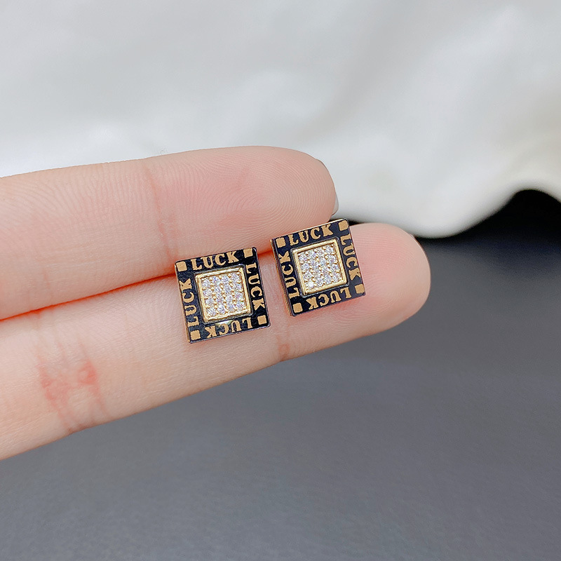 黒い幸運の四角のイヤリングの女性の新型の潮の小さい大衆のシンプルな気質の韓国のピアスの純銀の針の通勤する耳飾り