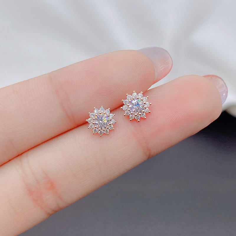 韓国の太陽の花の精巧な超フラッシュのピアスの女性の小さくてシンプルな純銀の針のピアスのネットの赤い同種の百合のイヤリング