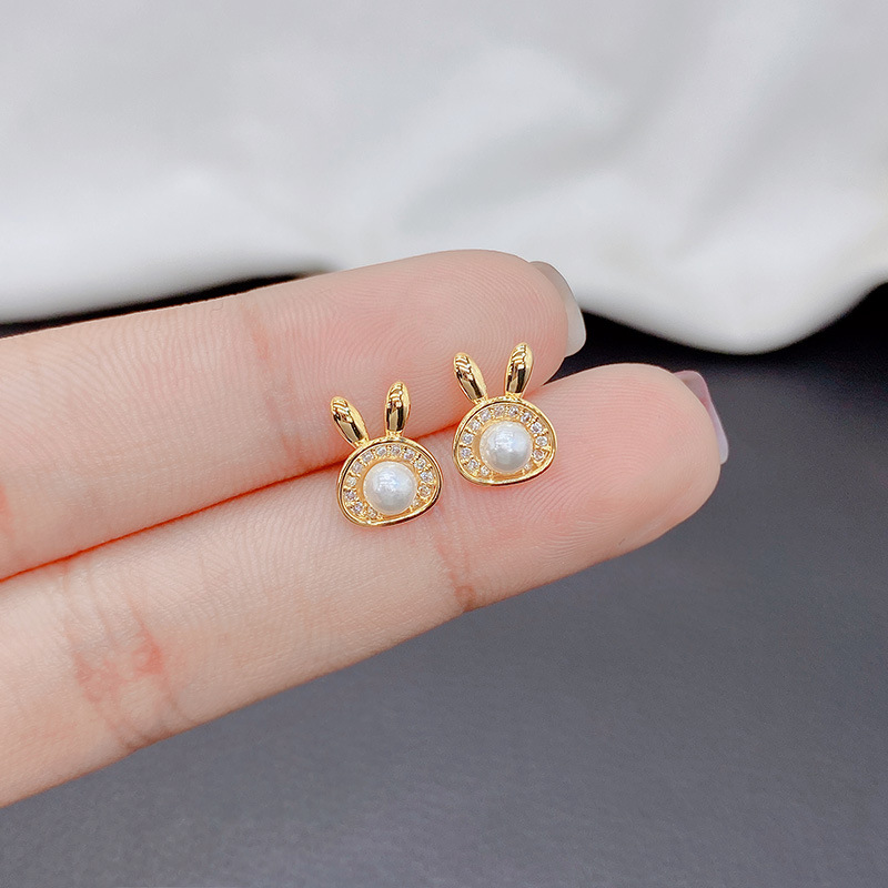 韓国の真珠のウサギのピアスの女性のかわいい個性の小さいイヤリングs 925純銀の針のファッションのファッションの耳飾り