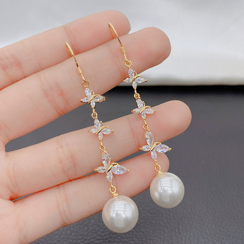 蝶のフリンジ真珠のペンダントの耳掛けは韓国のネットの赤い気質の高級感があります。