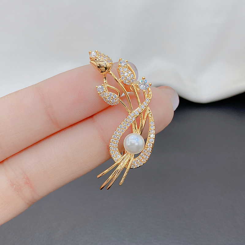 ジルコニウムの高級な精巧なチューリップのブローチの女性のファッション的な個性の小さい大衆のデザイン感の襟元の装飾は気質を現します。