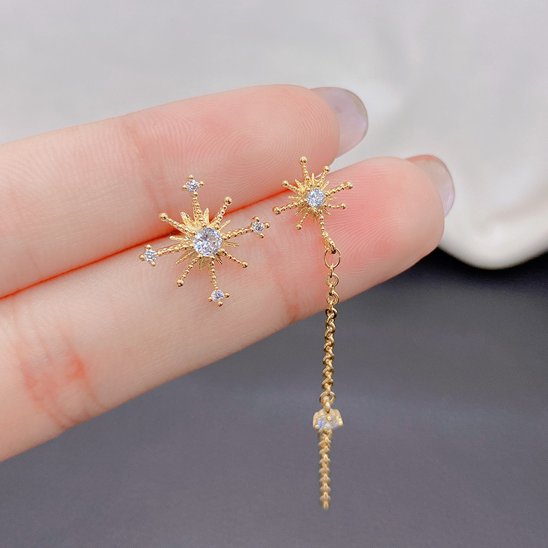 ファッションの潮流の個性の非対称の星のイヤリングの女性の大衆は韓国版のイヤリングのs 925の純銀の針のイヤリングを合わせます。