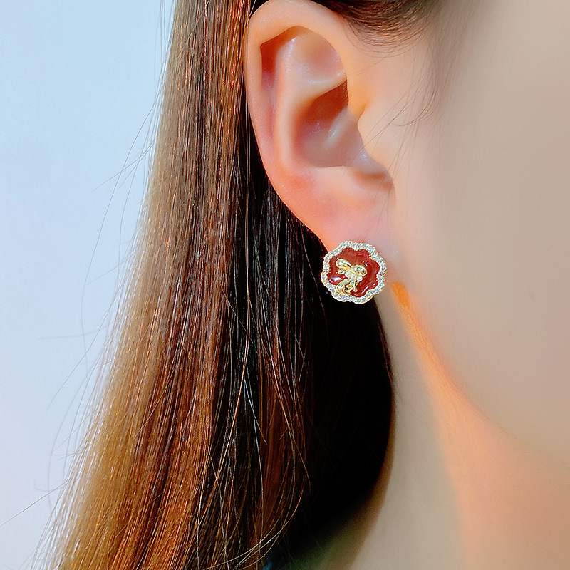 洗練された小さな赤いウサギのイヤリング小衆軽贅沢高級感デザイン感ピアス年越しピアス