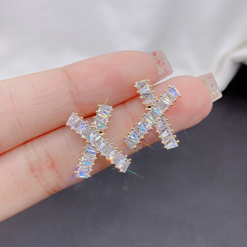 ジルコニウム文字Xピアスが細かくはめ込まれています。