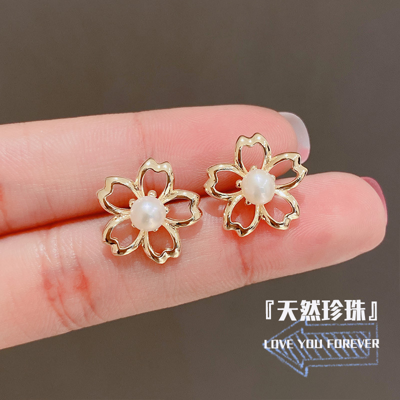 おしゃれでシンプルな天然真珠の花のピアス女性のフランス式の優雅なイヤリング