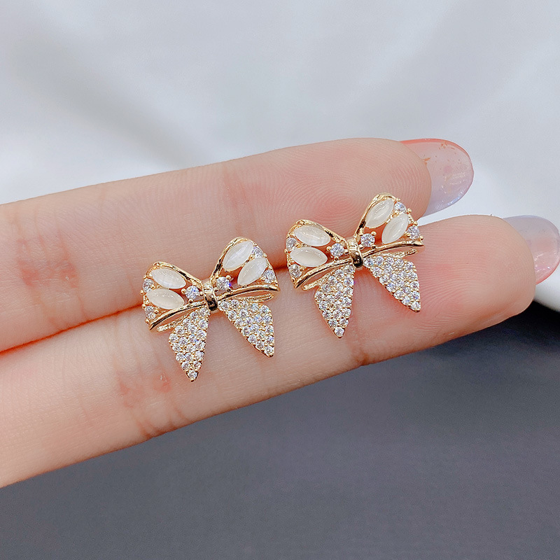 猫の目の石の微は蝶結びのイヤリングの女性の優雅な個性をはめ込んで、洗練されています。