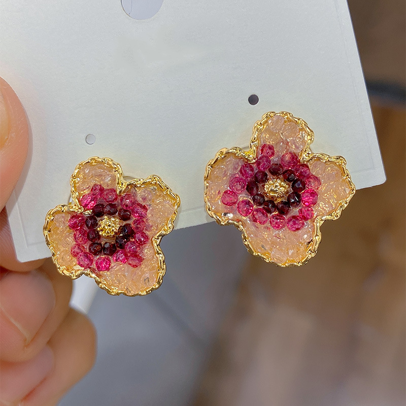 グラデーション水晶四葉草イヤリング女S925純銀針花耳飾りフランスレトロ小衆デザイン高級感