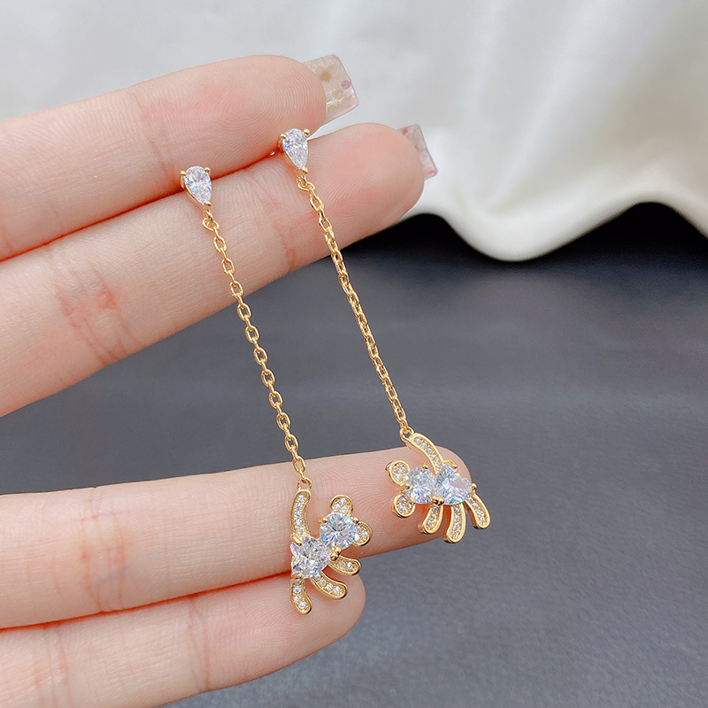 ファッションの流行の個性の超フラッシュの熊のペンダントの長いタイプのフリンジのイヤリングの個性の小さい大衆の百合の耳飾りの甘いイヤリング