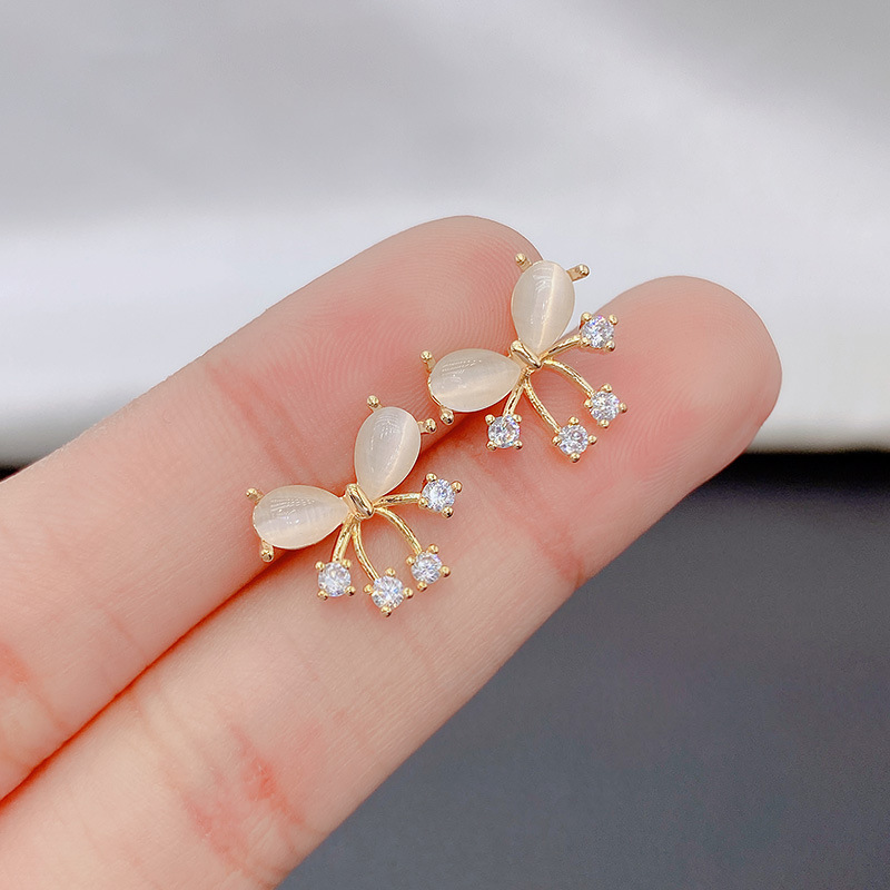 日本系の甘い猫の目の石の蝶のイヤリングの潮流の優しい小さいアンドロメダのピアスの新型の精巧で細い耳の穴の耳のクリップがありません。