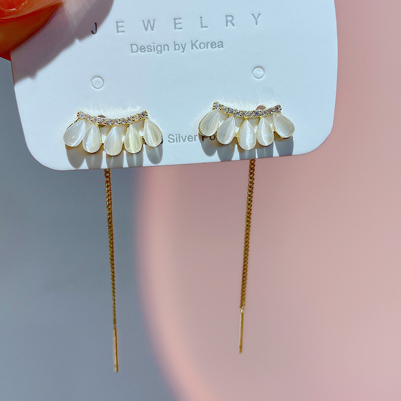 猫の目の石の水滴の耳の線の精巧で軽い豪華なイヤリングの長いタイプのフリンジの耳の線のファッションのアクセサリの高級感の百合の耳飾り
