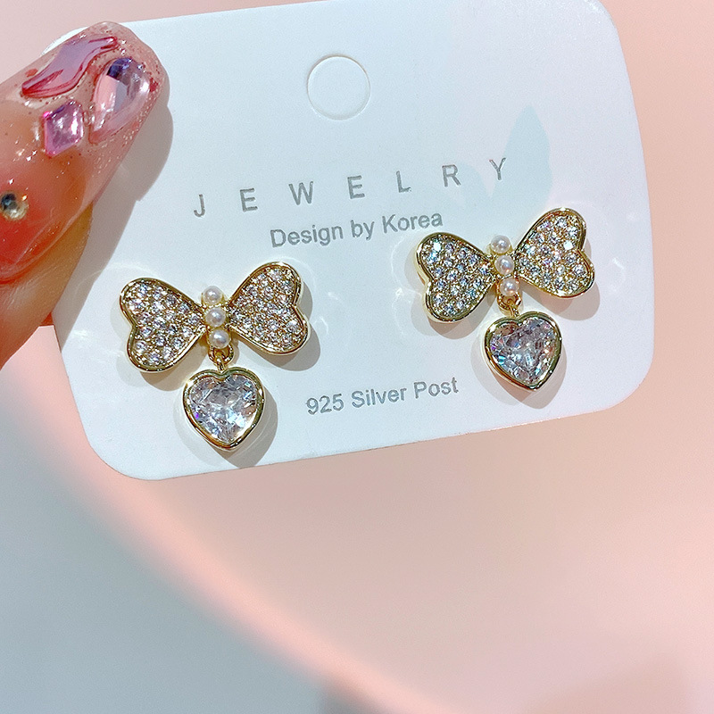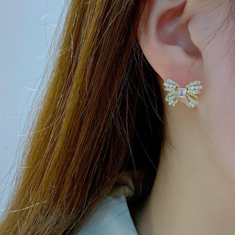 S925純銀の針の蝶結びの真珠の愛のピアスの女性の新潮の小さい大衆のデザイン感の軽い贅沢なイヤリングのシンプルな耳のクリップ