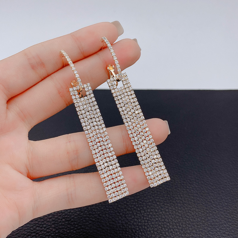 高級感のある豪華なドリルの正方形の長いタイプのフリンジの耳輪の女性の韓国版のファッションの大衆のデザイン感はイヤリングを誇張します。