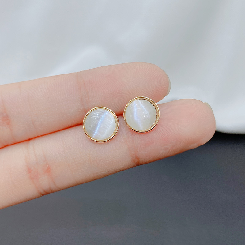 韓国の東大門はシンプルで温潤な猫の目の石の丸いイヤリングの新型の潮の小さい大衆の百合のイヤリングの女性の個性の耳飾りです。