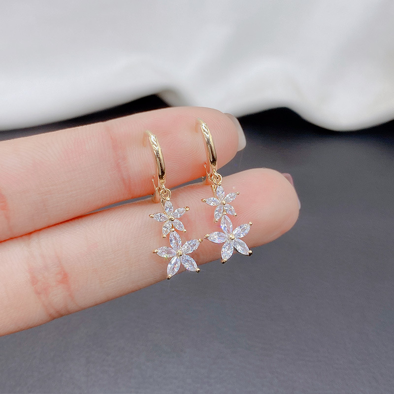 新商品の潮は軽くて豪華な五弁の花はジルコニウムのイヤリングを入れます。