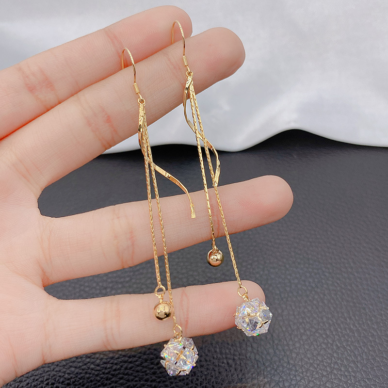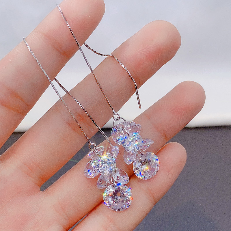 韓国の人工ジルコンS925純銀の耳のイヤリングの女性の長いタイプの耳飾りはやせた顔の潮の気質の性の冷たい風を現します。