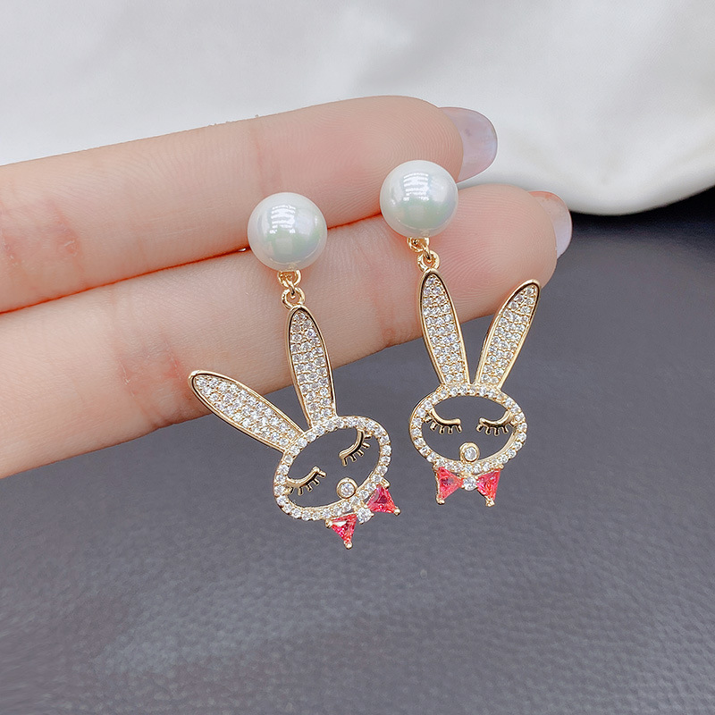 韓国の銀の針の真珠のウサギのペンダントのイヤリングのかわいい甘い気質のピアスの女性の個性の大衆は耳飾りを設計します。