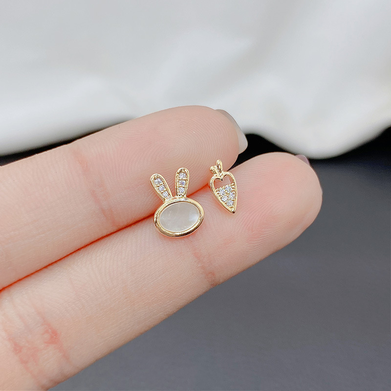 非対称のニンジンのウサギのイヤリングの女性は小さくて可愛いです。