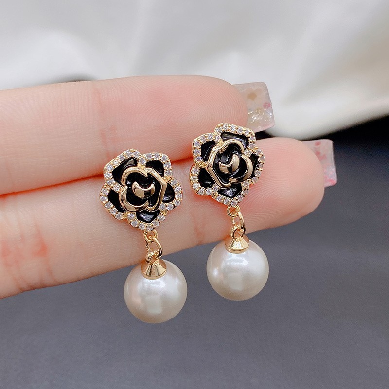 ファッションレトロな冷たい風のバラの真珠のペンダントのイヤリングの女性s 925純銀の針のフランス式は気質を現します。