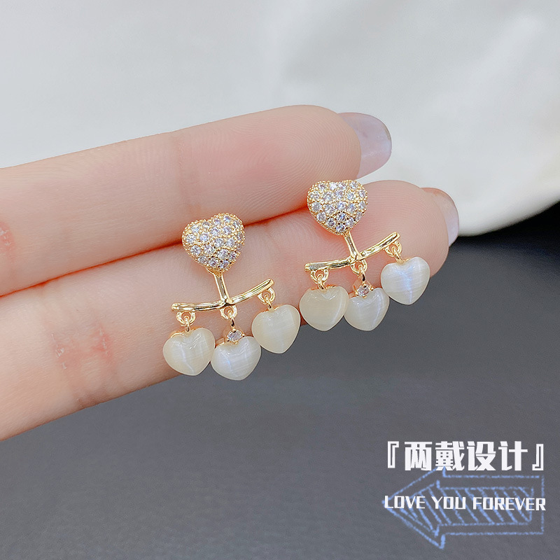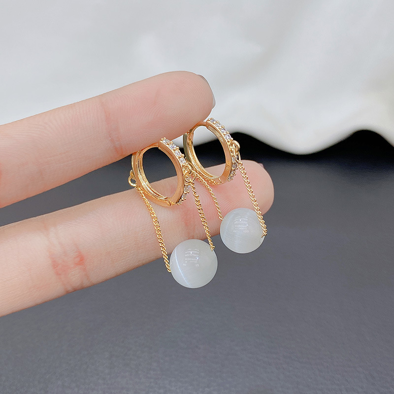 大衆のデザイン感猫眼石愛流蘇イヤリング韓国気質ネット紅一項二装軽贅沢高級ピアス