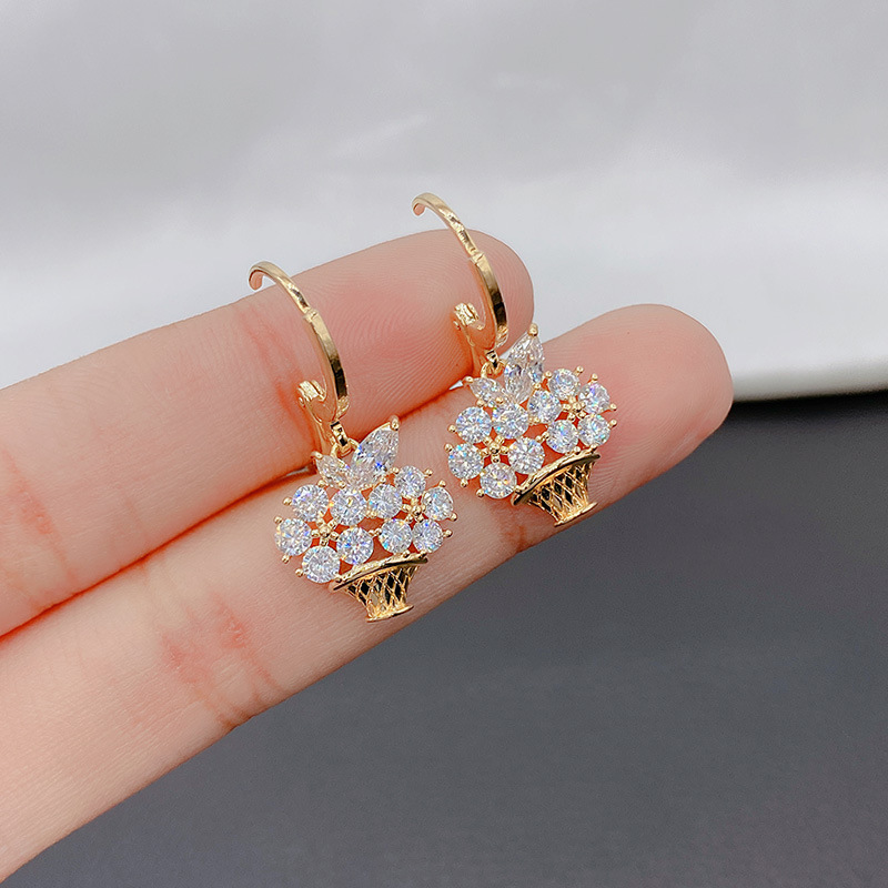 フランス式ジルコン鉢植えイヤリング女性韓国ネット赤同型耳ボタン新型潮東門個性気質耳飾り
