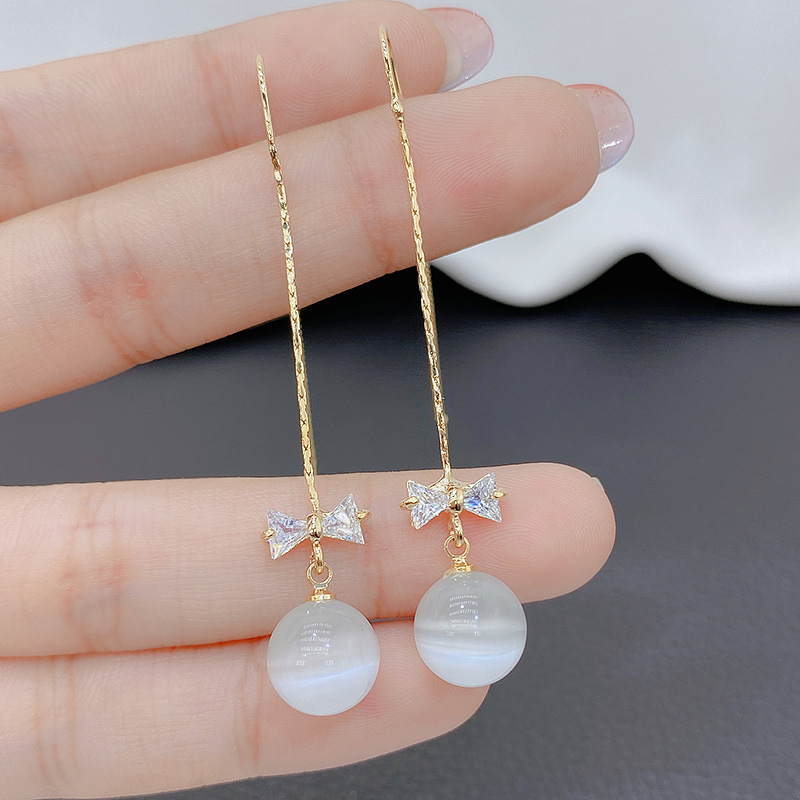 猫の目の石の蝶結びのイヤリングの女性の韓国の個性の甘いイヤリングのS925の純銀の針のファッションの気質の百合の耳飾り