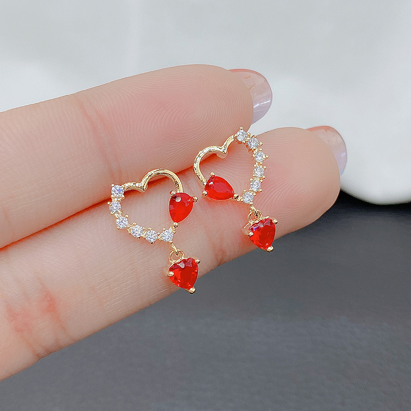 赤い愛のイヤリング桃心耳飾りS925純銀針ピアス水滴個性韓国気質洗練された新しいスタイル