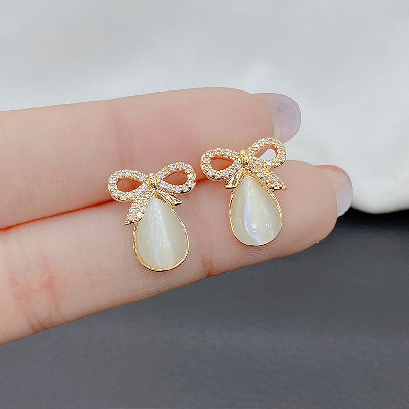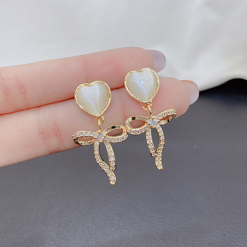 猫の目の石の愛の蝶結びのロマンチックで甘い耳飾りの女性の新型の潮の個性の気質のイヤリングのデザイン感の耳飾り