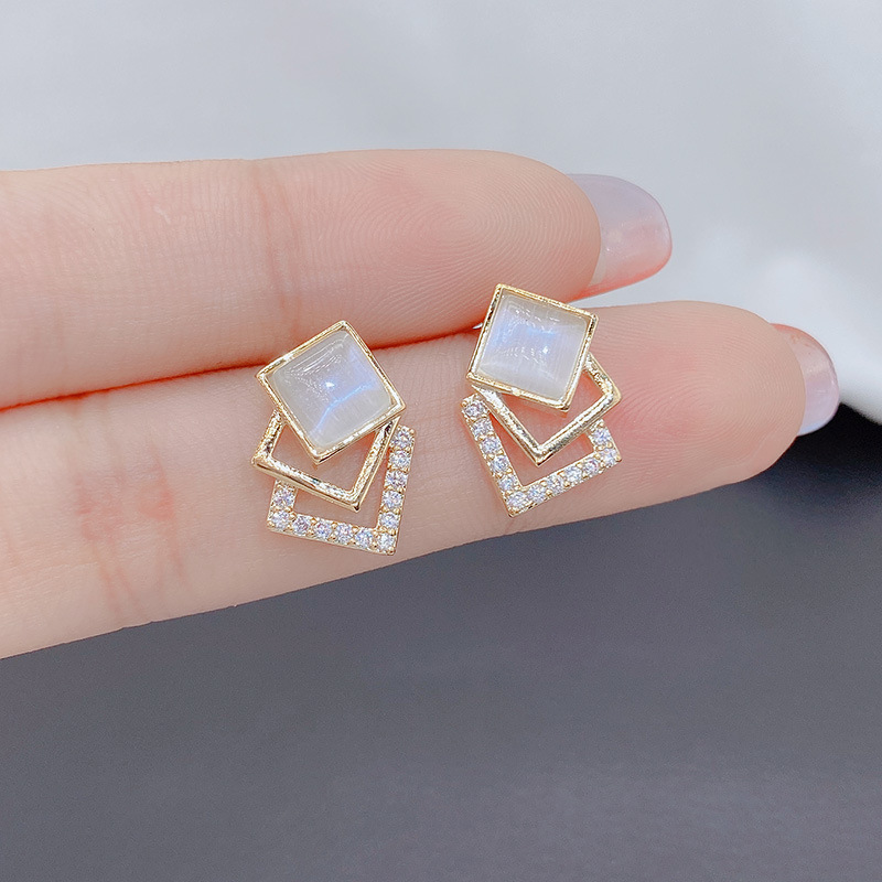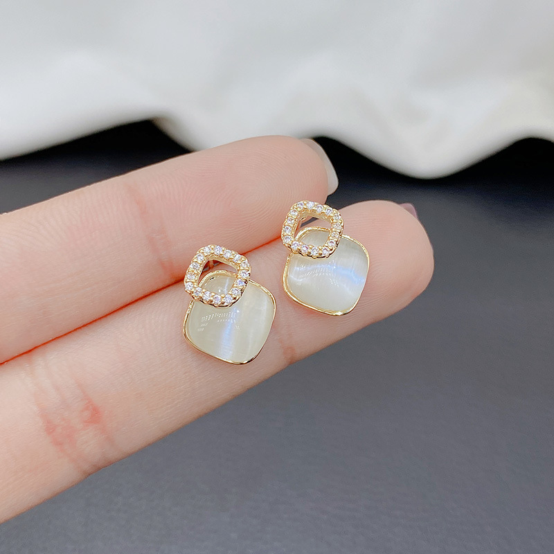 猫の目の石の四角のイヤリングのS925の純銀の針のファッション的なデザイン感の小さいイヤリングの女性の個性の名媛の気質の耳飾り