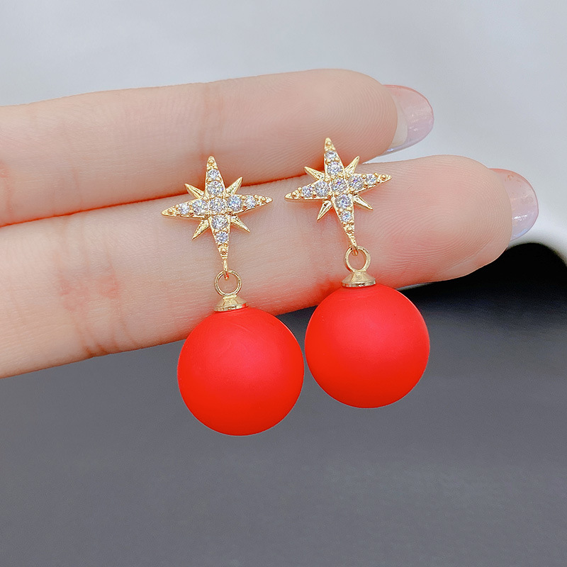 韓国の八芒星真珠のペンダントのイヤリングの高級感の赤い気質のピアスの女性は新年の美しい耳飾りに適します。