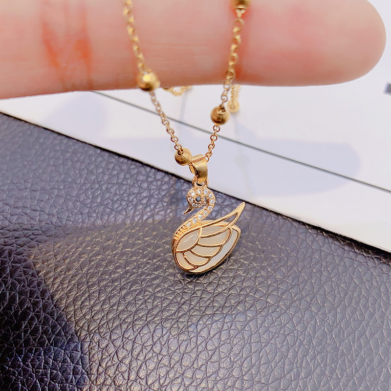 流行の猫の目の石の白鳥のチタンの鋼のネックレスの優雅なファッションの短いタイプの首の鎖の小さい大衆は冷淡な風の鎖を設計します。